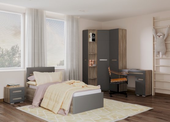 Стильная односпальная кровать Наоми – это прекрасный выбор для спальни ребенка или подростка. Выполненная из ЛДСП цветв дуб каньон и МДФ другого цвета, она будет отлично смотреться в интерьере любого стиля. Модель кровати всегда можно дополнить модулями из одноименной коллекции мебели и создать законченный образ спальни.