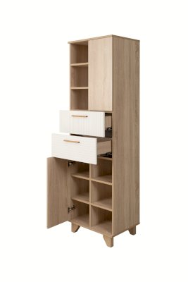Шкаф-пенал — это отличный функциональный элемент для гостиной. Пенал оснащен открытыми полками и полками со створками, что позволяет хранить и предметы декора, и личные вещи, документы.