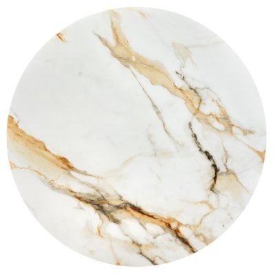 Стильный нераздвижной стол Aura – идеальное сочетание элегантности и функциональности. Стол Aura обладает глянцевой премиальной круглой столешницей из керамики, имитирующей белый мрамор, диаметром 110 см.
