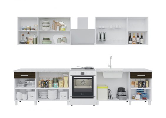 Объединяя два набора, размер кухни можно увеличивать и получать TREND 2600, суммируя наборы. Все кухни собираются в зеркальном исполнении.
