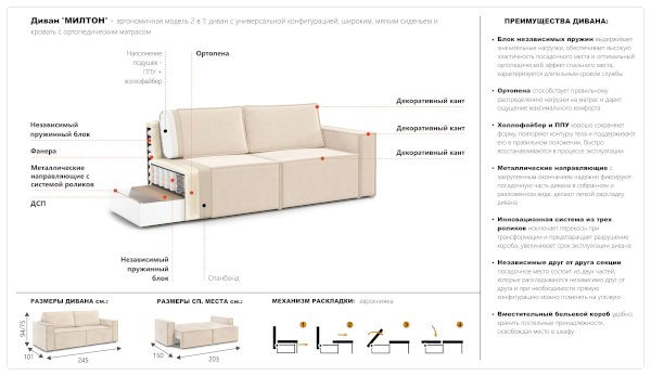 Диван Милтон (Империал) - за 60 776 руб. в Нижнекамске. Купите на сайте nizhnekamsk.onlinemarketmebeli.ru или по телефону 8(800)505-30-63 уже сегодня! Уточнить наличие, комплектацию, актуальную цену можно бесплатно у менеджера ежедневно. Закажите Диван Милтон (Империал) до конца акции! Доступна покупка в кредит, рассрочку. Доставим со склада или на заказ.