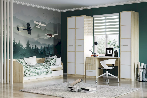 Письменный стол НМ 011.47-01 М2 поможет обустроить комфортный учебный уголок в детской. На рабочей поверхности модуля достаточно места для размещения не только письменных принадлежностей, но и ноутбука. Закругленные углы столешницы делают эксплуатацию модуля безопасной для ребенка. По окончании занятий ребенок сможет убрать книги и тетради в выдвижные ящики для поддержания порядка на рабочем месте.