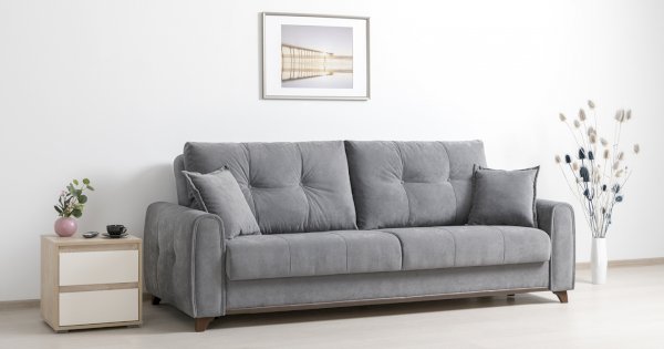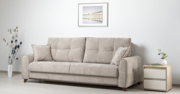 Плимут - современный диван с комфортной посадкой. Может быть дополнен креслом Плимут. Удачно впишется в любой современный интерьер благодаря универсальному дизайну и трендовым цветам обивки. При разложении не требует отодвигания от стены. Обеспечит полноценным ровным спальным местом двух человек.
