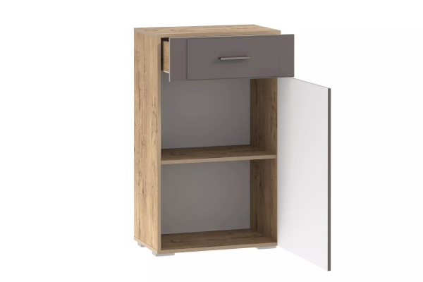 Тумба Livorno НМ 040.65 поможет в организации систематизированного хранения обуви в прихожей. Пространство за распашной дверью разделено на две секции посредством полки. Такая конструктивная особенность позволяет аккуратно расставить большое количество обуви внутри тумбы и избежать беспорядка при хранении. Модуль также оборудован выдвижным ящиком для ключей/кошельков/документов, которые должны быть в быстром доступе при сборах.