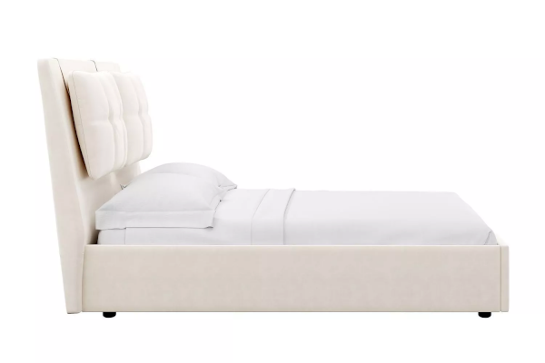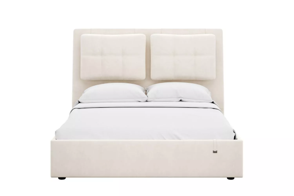 Кровати выполнены как в нейтральных, так и в ярких тканях велюр, что позволяет подобрать подходящий вариант почти под любой интерьер. В качестве оформления применяются декоративные подушки на изголовье. Подъемный механизм легок в управлении, а вместительный короб внутри кровати подойдет для хранения подушек, белья и других вещей.