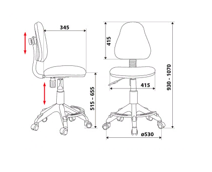 Спинка пружинит и перемещается вверх-вниз по опоре