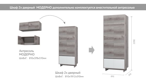 Двухстворчатый шкаф MODERNO (Марибель) - за 18 982 руб. в Нижнекамске. Купите на сайте nizhnekamsk.onlinemarketmebeli.ru или по телефону 8(800)505-30-63 уже сегодня! Уточнить наличие, комплектацию, актуальную цену можно бесплатно у менеджера ежедневно. Закажите Двухстворчатый шкаф MODERNO (Марибель) до конца акции! Доступна покупка в кредит, рассрочку. Доставим со склада или на заказ.